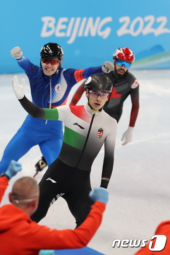 13일 오후 중국 베이징 수도실내체육관에서 열린 2022 베이징 동계올림픽 쇼트트랙 남자 500m 결승 경기에서 헝가리의 류사오앙이 금메달을 획득 후 환호하고 있다. 2022.2.13 © 뉴스1 안은나 기자