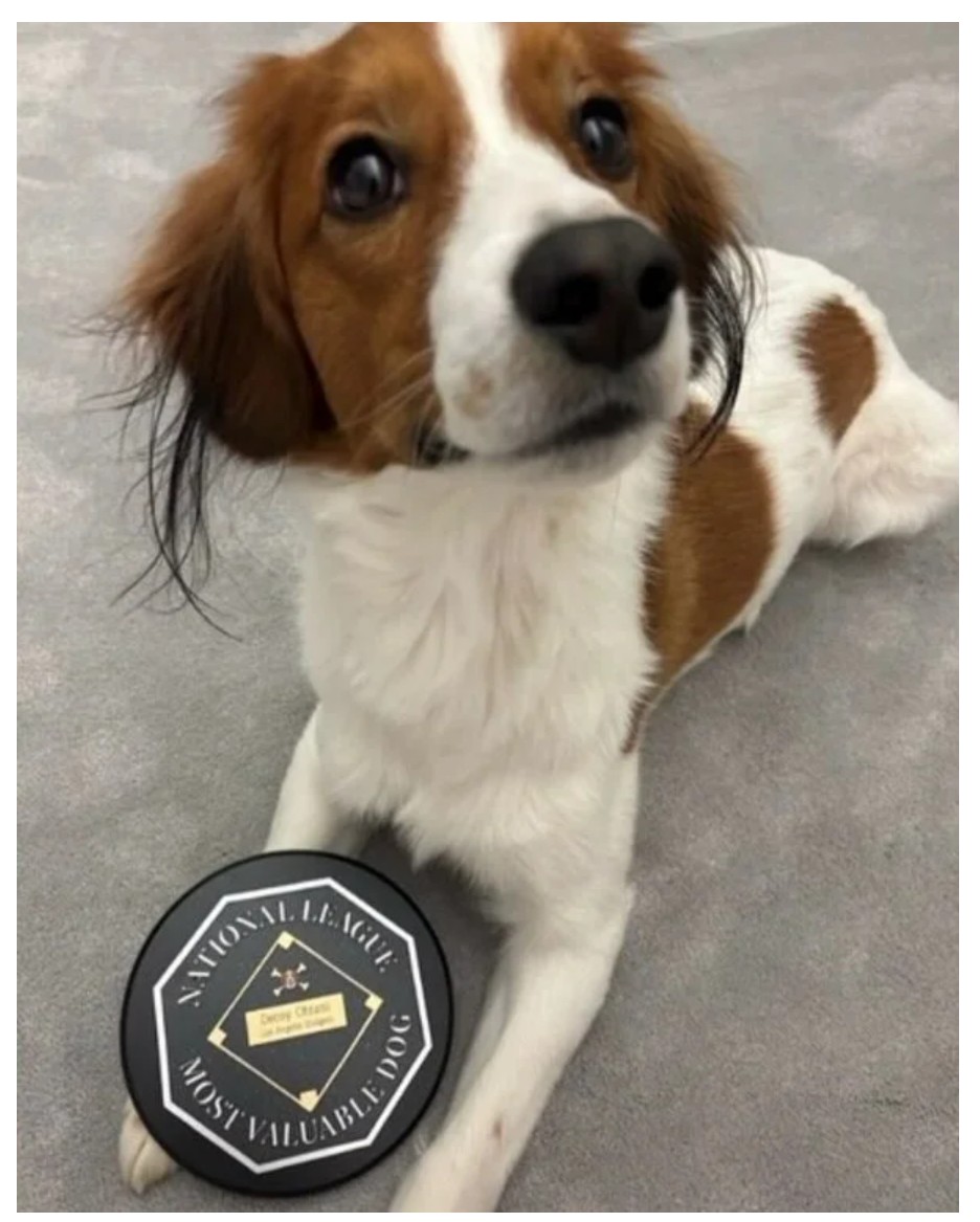 사실 데코이는 이미 '주인님' 못지않은 슈퍼스타다. 네덜란드 귀족견 쿠이커혼제 종인 데코이는 지난달 전미야구기자협회(BBWAA) 시상식에서 사상 최초로 'MVD(Most Valuable Dog)' 트로피를 받았다. 오타니의 MVP 수상과 나란히 이뤄진 쾌거(?)였다.