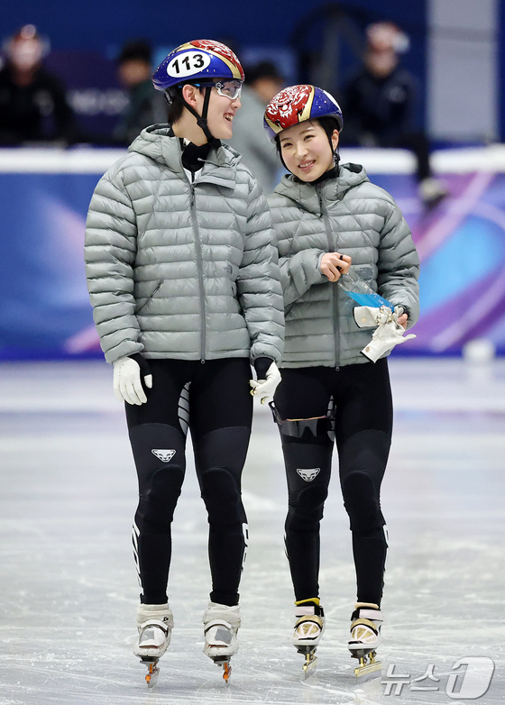 쇼트트랙 대표팀의 임종언(왼쪽)과 김길리 © 뉴스1 김진환 기자