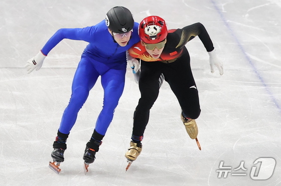 중국 쇼트트랙 국가대표 린샤오쥔(30, 한국명 임효준)이 10일(현지시간) 이탈리아 밀라노 아이스 스케이팅 아레나에서 열린 남자 1000m 예선에서 역주하고 있다. 2026.2.10 © 뉴스1 김진환 기자