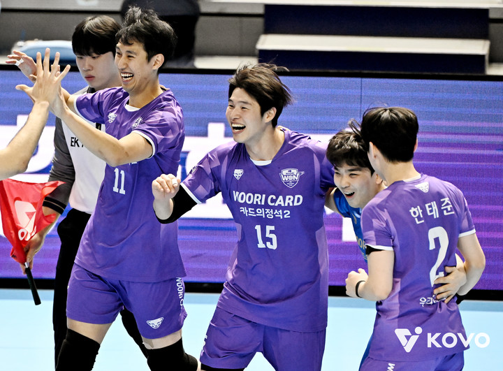 2, 3세트를 연달아 차지한 우리카드는 4세트까지 25-22로 승리하며 역전승을 이뤄냈다.