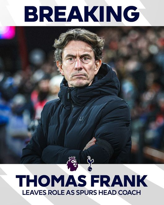 토트넘은 11일(한국시간) 구단 홈페이지를 통해 "클럽은 남자팀 감독 교체를 결정했으며, 프랭크 감독은 오늘부로 사임한다. 그는 2025년 6월 부임했다"라고 공식 발표했다.