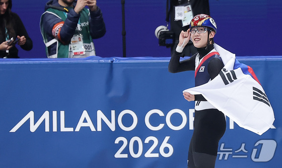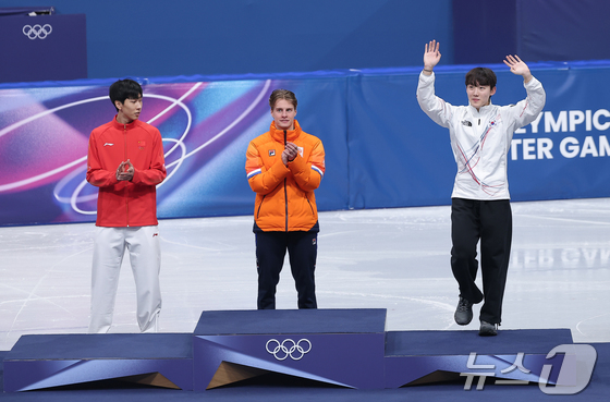 쇼트트랙 남자 1000m에서 동메달을 획득한 임종언이 12일(현지시간) 이탈리아 밀라노 아이스 스케이팅 아레나에서 열린 2026 밀라노·코르티나담페초 동계올림픽 쇼트트랙 남자 1000m 시상식에서 손을 흔들고 있다. © 뉴스1 김성진 기자