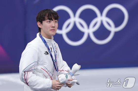 쇼트트랙 남자 1000m에서 동메달을 획득한 임종언이 12일(현지시간) 이탈리아 밀라노 아이스 스케이팅 아레나에서 열린 2026 밀라노·코르티나담페초 동계올림픽 쇼트트랙 남자 1000m 시상식에서 기뻐하고 있다. 2026.2.13 © 뉴스1 김성진 기자