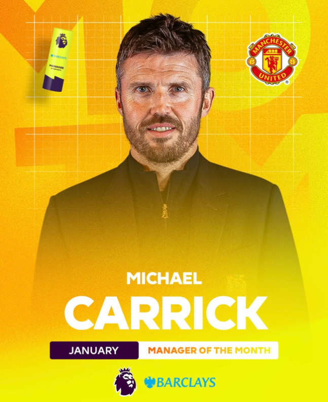 프리미어리그 사무국은 공식 홈페이지를 통해 "2경기 2승, 그것도 프리미어리그 1위와 2위를 상대로 거둔 승리. 맨유의 캐릭 감독이 1월 '이달의 감독'에 선정됐다"고 13일 밝혔다.