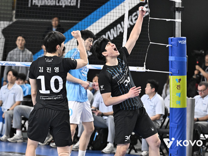 레오가 32득점을 폭발시키고 허수봉이 26득점으로 팀 승리를 합작했다.