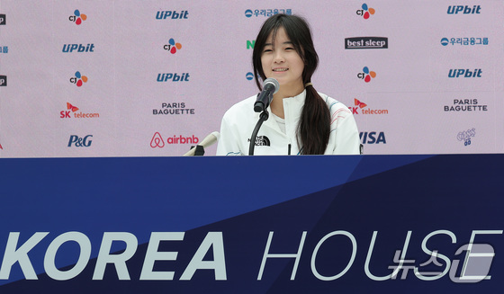 최가온은 14일(이하 한국시간) 이탈리아 밀라노의 빌라 네키 캄필리오에 위치한 코리아하우스에서 진행한 공식 기자회견에 참석해 올림픽 금메달을 딴 소감 등에 대해 밝혔다.