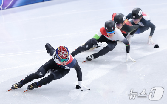 쇼트트랙 황대헌이 14일(현지시간) 이탈리아 밀라노 아이스스케이팅 아레나에서 열린 2026 밀라노·코르티나담페초 동계올림픽 쇼트트랙 남자 1500m 준준결승에서 질주하고 있다. 2026.2.15 © 뉴스1 김성진 기자