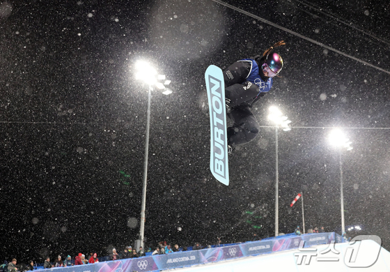 스노보드 최가온이 12일(현지시간) 이탈리아 리비뇨 스노파크에서 열린 2026 밀라노·코르티나담페초 동계올림픽 스노보드 여자 하프파이프 결선 1차전 경기를 펼치고 있다. 이날 최가온은 1,2차 경기에서 넘어진 후 3차 시기에 90.25점을 받아 단독 1위에 올라서 금메달을 획득했다. 2026.2.13 © 뉴스1 김진환 기자