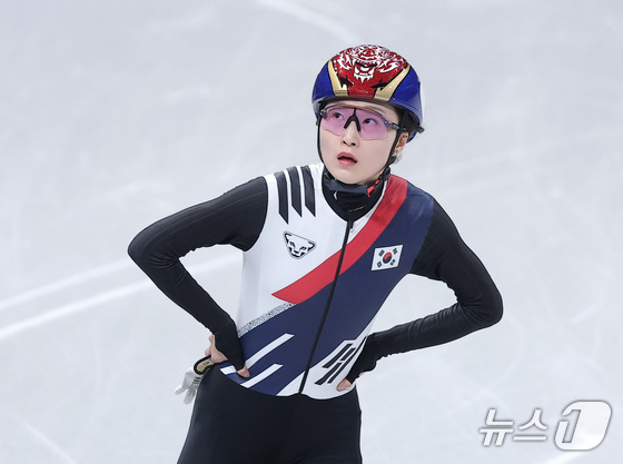 쇼트트랙 최민정이 16일(현지시간) 이탈리아 밀라노 아이스스케이팅 아레나에서 열린 2026 밀라노·코르티나담페초 동계올림픽 쇼트트랙 여자 1000m 준결승에서 조4위로 결승선을 통과한 후 기록을 확인하고 있다. © 뉴스1 김성진 기자