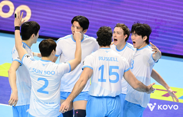 러셀이 20득점, 이든과 정지석이 각각 13득점을 올려 팀 승리를 합작했다.