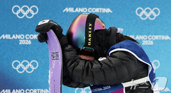 스노보드 유승은이 18일(현지시간) 이탈리아 리비뇨 스노파크에서 열린 2026 밀라노·코르티나담페초 동계올림픽 스노보드 여자 슬로프스타일 3차 결선을 마친 뒤 금메달을 획득한 일본의 후카다 마리(왼쪽)의 위로를 받고 있다. 2026.2.18 © 뉴스1 김진환 기자