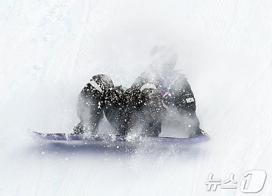스노보드 유승은이 18일(현지시간) 이탈리아 리비뇨 스노파크에서 열린 2026 밀라노·코르티나담페초 동계올림픽 스노보드 여자 슬로프스타일 2차 결선에서 넘어지고 있다. 2026.2.18 © 뉴스1 김진환 기자