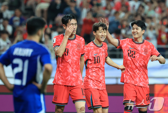 득점 후 기뻐하는 이재성(가운데)2025.6.10 © 뉴스1 김진환 기자