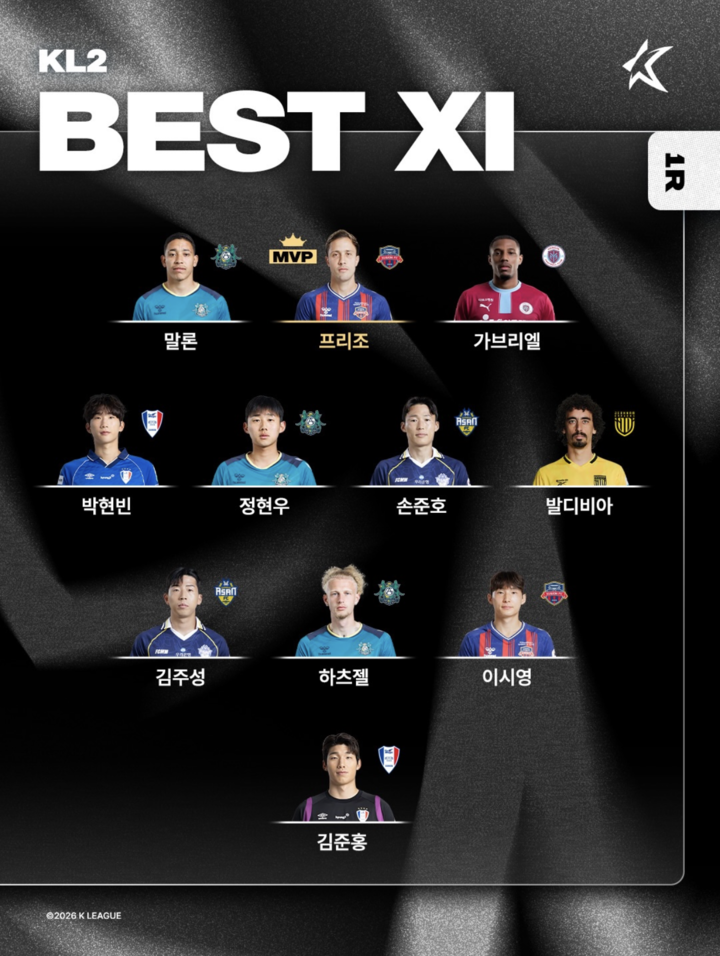 [하나은행 K리그2 2026 1R MVP, 베스트 팀/매치, 베스트11]