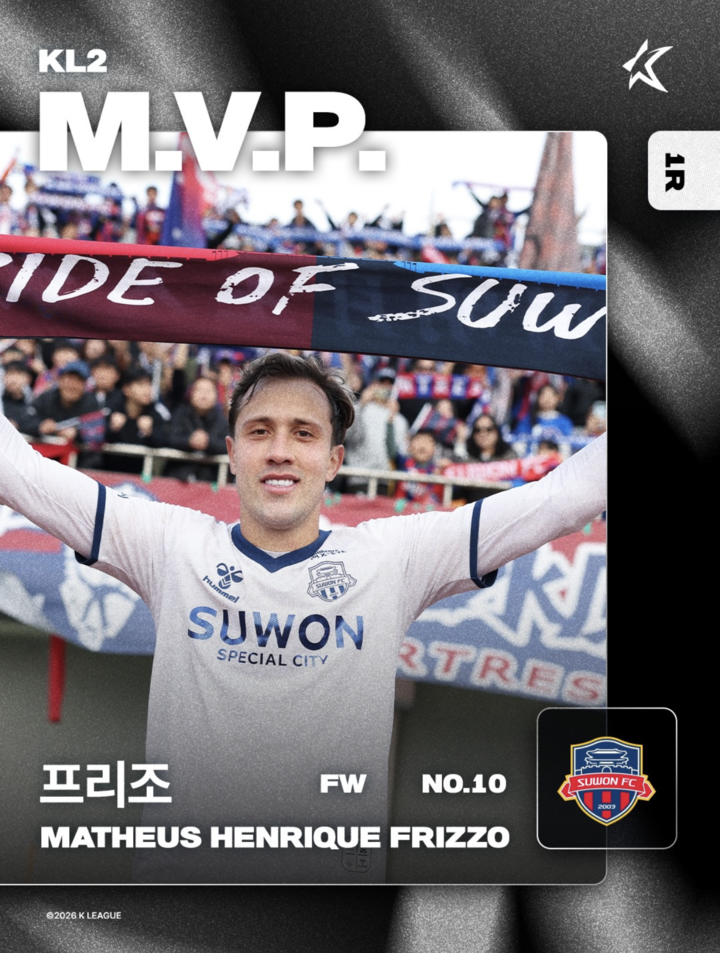 K리그2의 1라운드 MVP는 프리조(수원FC)가 차지했다.