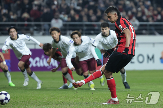4일 오후 서울시 마포구 월드컵로 서울월드컵경기장에서 열린 아시아축구연맹(AFC) 챔피언스리그 엘리트(ACLE) 16강 1차전 FC서울과 비셀 고베의 경기에서 FC서울 후이즈가 패널티킥을 차고 있다. 2026.3.4 © 뉴스1 박정호 기자