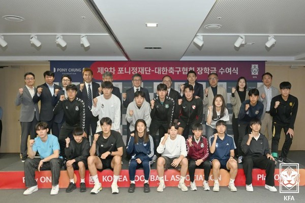 제10차 2025 포니정재단-대한축구협회 장학금 수여식은 오는 10일 오후 2시 코리아풋볼파크 스타디움 1층 대강당에서 열린다. 이번 수여식에는 축구협회에 등록된 남녀 중학교 선수 100명에게 1인당 200만 원씩 총 2억 원이 전달될 예정이다.