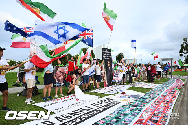 한편 호주에 거주하고 있는 이란인들은 경기장에서 팀을 응원하면서도 조국에 대한 항의를 멈추지 않았다. 경기 전에는 골드코스트 경기장 밖에 모여 이스라엘 국기, 호주 국기, 그리고 이란 혁명 이전의 이란 국기를 흔들어 눈길을 끌었고, 관중석에서도 국가가 연주되는 동안 야유와 함께 미국 대통령 도널드 트럼프를 지지하는 현수막, 옛 이란 국기를 들었다.