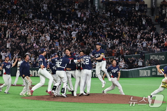 극적인 8강 진출을 일군 야구대표팀. © 뉴스1 구윤성 기자