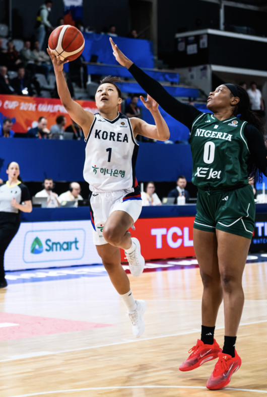 박수호 감독이 이끄는 여자농구대표팀은 13일 새벽(한국시간) 프랑스 빌뢰르반 아스트로발레에서 개최된 2026 FIBA 농구월드컵 A조 예선 2차전에서 나이지리아를 77-60으로 이겼다. 1차전서 독일에 49-76으로 패했던 한국은 첫 승을 신고했다.