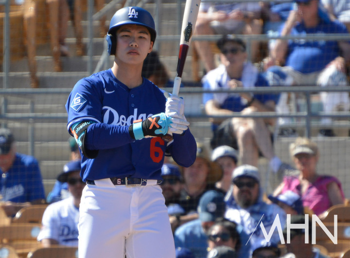 이날 경기를 앞두고 다저스가 발표한 선발 라인업에 김혜성은 1번 타자, 2루수 자리에 이름을 올렸다. 그는 이날 경기 전 기준 스프링캠프 타율 0.462, 1홈런 5타점을 기록 중이다. 출루율과 장타율을 합한 OPS도 1.154로 좋다.