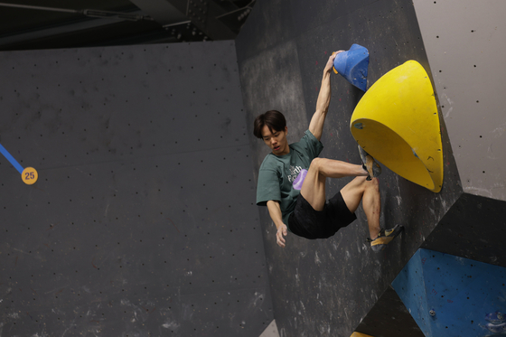 남자부 2관왕을 차지한 노현승의 볼더 완등 모습(대한산악연맹 제공