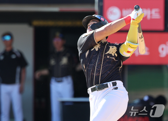 '괴물 타자' 안현민(KT 위즈)이 프로 데뷔 첫 풀타임 시즌 성적에 대해 스스로 궁금하다며 웃었다.