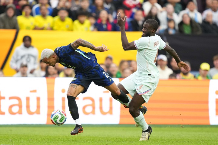 프랑스는 전반 32분 킬리안 음바페의 선제골로 앞서 나갔다. 중앙선 부근에서 오렐리앙 추아메니가 브라질의 빌드업을 끊어냈고, 이후 우스만 뎀벨레가 찔러준 패스를 음바페가 잡아 일대일 상황에서 감각적인 칩슛으로 마무리하며 선제골을 터트렸다. 음바페의 A매치 56호 골이었다.