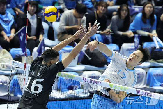 대한항공은 1세트를 가볍게 따냈다. 외인 마쏘의 중앙 공격을 적극적으로 활용하면서 정지석과 임동혁의 좌우 공격도 살아났다.