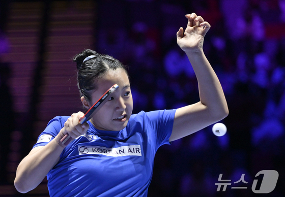 신유빈이 4일 중국 마카오에서 열린 2026 국제탁구연맹(ITTF) 남녀 월드컵 여자 단식 8강전에서 중국의 천싱퉁과 경기하고 있다.© 신화=뉴스1