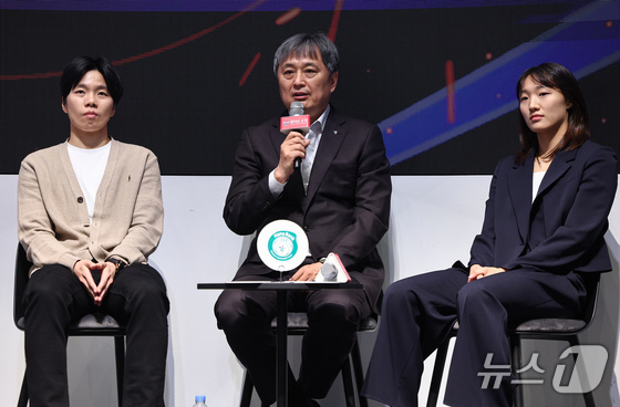 하나은행 이상범 감독이 6일 서울 용산구 서울드래곤시티에서 열린 BNK금융 2025-2026 여자프로농구 포스트시즌 미디어데이에서 발언하고 있다. 2026.4.6 © 뉴스1 김도우 기자