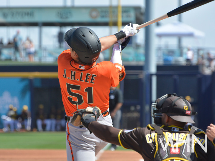 두 번째 타석은 3회말 공격 때 찾아왔다. 원아웃 주자 1루 상황에 나온 이정후는 상대팀 투수 페인터가 던진 5구, 93.9마일짜리 싱커를 받아 쳤다. 하지만 2루수 앞 땅볼이 된 이 타구는 ‘4-6-3’으로 이어지는 병살타가 됐다.