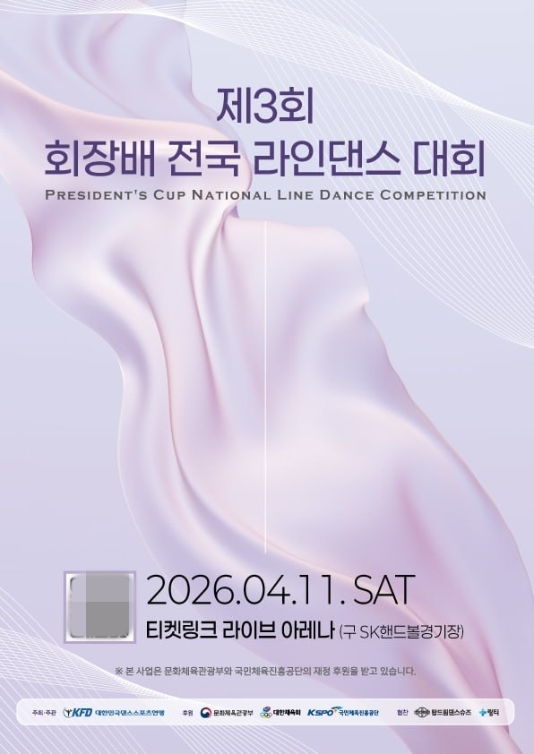 (사)대한민국댄스스포츠연맹(회장 강일성, 이하 KFD)이 오는 11~12일 양일에 걸쳐 올림픽공원 티켓링크라이브아레나(구 핸드볼경기장)에서 ‘제3회 회장배 라인댄스 대회’와‘제21회 회장배 전국 댄스스포츠 선수권 대회’를 개최한다.