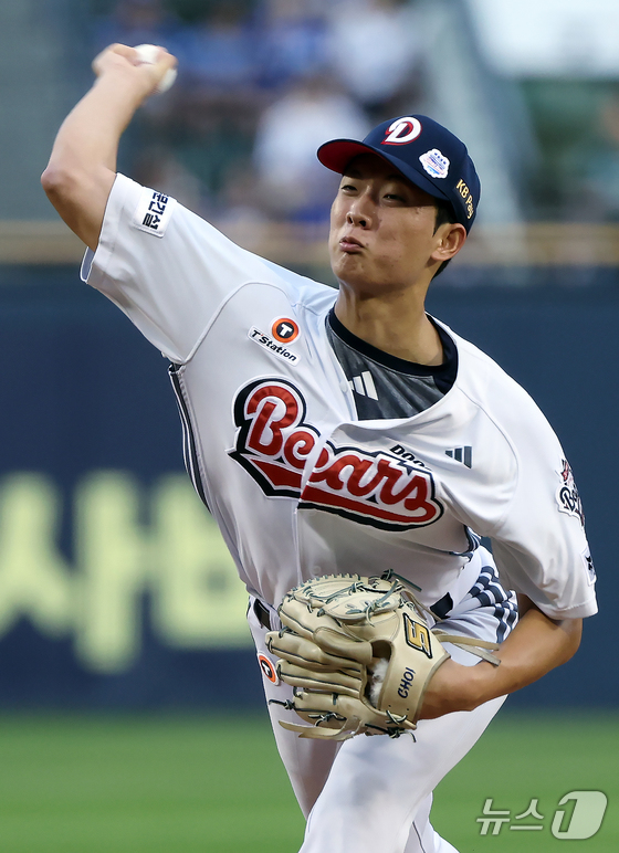 두산 선발 최민석이 28일 오후 서울 송파구 잠실야구장에서 열린 프로야구 '2025 신한 SOL뱅크 KBO 리그' 삼성 라이온즈와 두산 베어스의 경기에서 역투하고 있다. 2025.8.28 © 뉴스1 박정호 기자