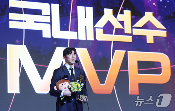 그는 기자단 투표에서 총유효표 117표 중 106표의 압도적 지지를 받아 창원 LG의 정규리그 우승을 이끈 유기상(7표)을 따돌리고 국내선수 MVP 수상의 영예를 안았다.