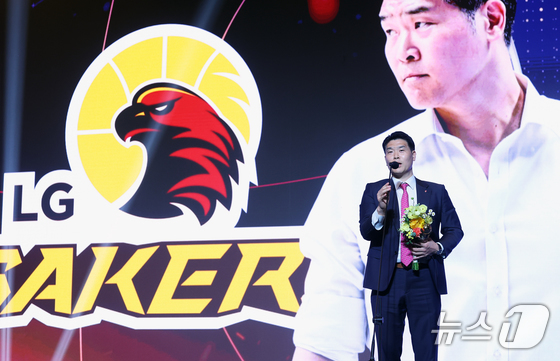 9일 오후 서울 강남구 그랜드 인터컨티넨탈 서울 파르나스 그랜드볼룸에서 열린 2025-2026 LG전자 프로농구 시상식에서 감독상을 수상한 조상현 감독(창원 LG)이 수상 소감을 밝히고 있다. 2026.4.9 © 뉴스1 오대일 기자