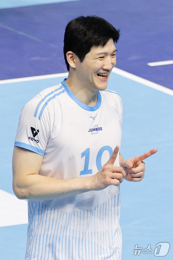 10일 오후 인천 계양체육관에서 열린 프로배구 2025-2026 V-리그 남자부 챔피언 결정전 5차전 대한항공 점보스와 현대캐피탈 스카이워커스의 경기, 대한항공 주장 정지석이 득점 후 기뻐하고 있다. 2026.4.10 © 뉴스1 안은나 기자