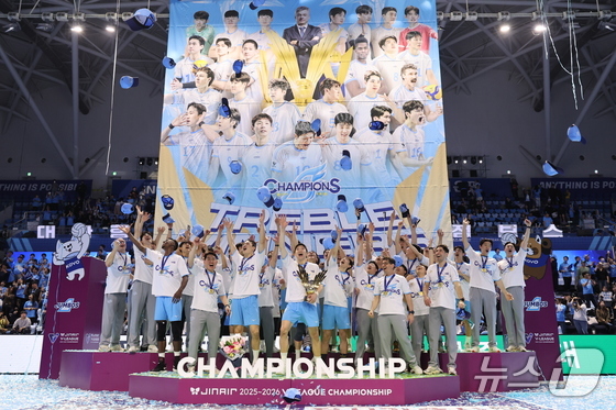 특히 올 시즌엔 KOVO컵과 정규리그 1위, 챔프전까지 '트레블'을 달성했다. 대한항공이 트레블을 달성한 건 2022-23시즌 이후 3년 만이다.
