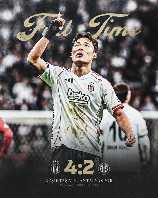 베식타스는 같은 날 튀르키예 이스탄불의 튀프라쉬 스타디움에서 열린 2025-2026시즌 쉬페르리그 29라운드 홈 경기에서 안탈리아스포르를 4-2로 꺾었다.