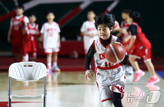 7일 서울 송파구 잠실학생체육관에서 SK 나이츠 유소년팀 선수들이 훈련을 하고 있다. © 뉴스1 최지환 기자