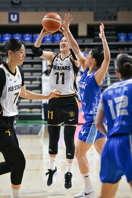 청주 KB스타즈는 10일 아산이순신체육관에서 개최된 BNK금융 2025-26 여자프로농구 4강 플레이오프 3차전에서 아산 우리은행을 81-55로 이겼다. 쾌조의 3연승을 달린 KB스타즈는 챔피언결정전에 진출해 통합우승을 노린다.