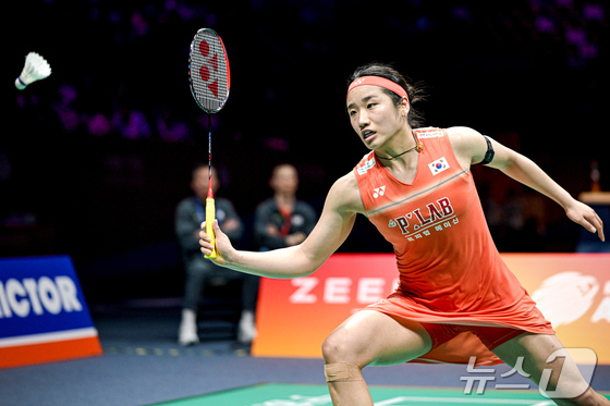 '배드민턴 여제' 세계 랭킹 1위 안세영이 12일(한국시간) 중국 닝보에서 열린 2026 아시아배드민턴선수권대회 여자 단식 결승전 왕즈이(중국)와의 경기에서 리시브를 하고 있다. 안세영은 세계 랭킹 2위 왕즈이에 1시간 40분 동안 펼쳐전 혈전 끝에 게임 스코어 2대1(21대12, 17대21, 21대18) 승리를 거두며 시니어 무대 진입 뒤 처음으로 아시아 선수권을 제패했다. © 신화=뉴스1