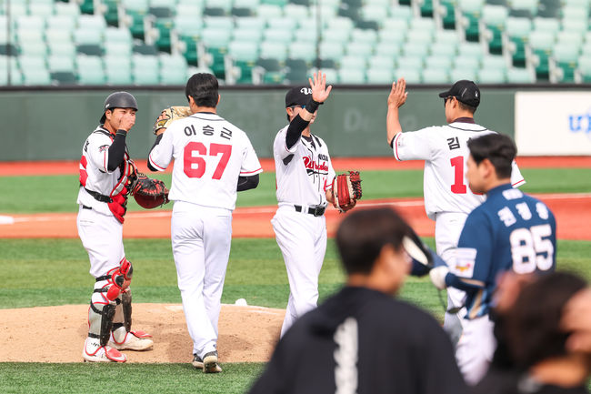 마운드도 끝까지 흔들리지 않았다. 고바야시에 이어 7회 등판한 진현우는 1이닝을 무실점으로 막으며 프로 데뷔 첫 승을 따냈다. 이후 고효준과 이승근이 각각 1이닝씩을 책임지며 리드를 지켜냈다.