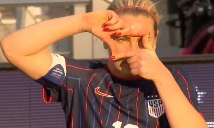 (MHN 박찬기 기자) 미국 여자 축구선수 린지 힙스가 일본을 상대로 득점을 터트린 뒤, 또 한번 손흥민의 시그니처 찰칵 세리머니를 따라하며 샤라웃했다.