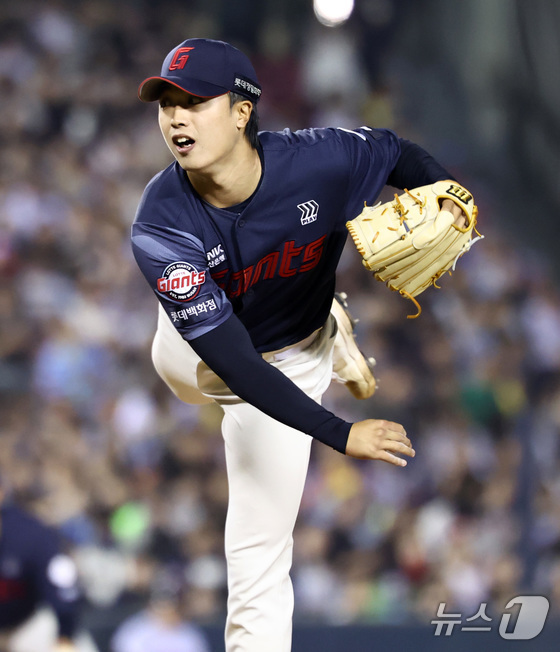 15일 서울 송파구 잠실야구장에서 열린 '2026 신한 SOL KBO리그' 열린 롯데자이언츠와 LG트윈스의 경기, 롯데 박정민이 역투하고 있다. 2026.4.15 © 뉴스1 최지환 기자