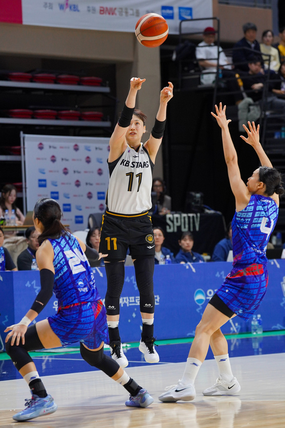 박지수가 골 밑에서 중심을 잡아준 덕에 동료들이 마음 놓고 외곽에서 슛을 던지면서 KB는 '양궁 농구'라는 새로운 무기도 장착했다. 플레이오프 3차전에서는 역대 팀 한 경기 최다 3점 슛 17개를 기록하기도 했다.
