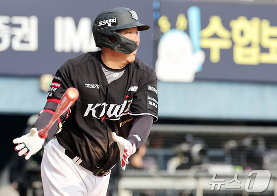 29일 서울 송파구 잠실야구장에서 열린 '2026 신한 SOL KBO리그' KT 위즈와 LG 트윈스의 경기, KT 김현수가 7회초 1사 1루 상황 병살타를 치고 있다. 2026.3.29 © 뉴스1 김진환 기자