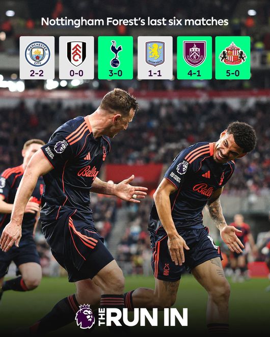사실상 강등 경쟁에서 발을 빼게 된 노팅엄 선수단은 기쁨을 감추지 못했다. 이제 올 시즌 남은 경기는 단 4경기. 맨체스터 시티와도 2-2로 비기고, 토트넘을 3-0으로 격파하는 등 6경기 무패 행진을 달리고 있는 최근 기세를 고려하면 노팅엄이 18위로 추락하는 일은 상상하기 어렵다.