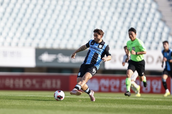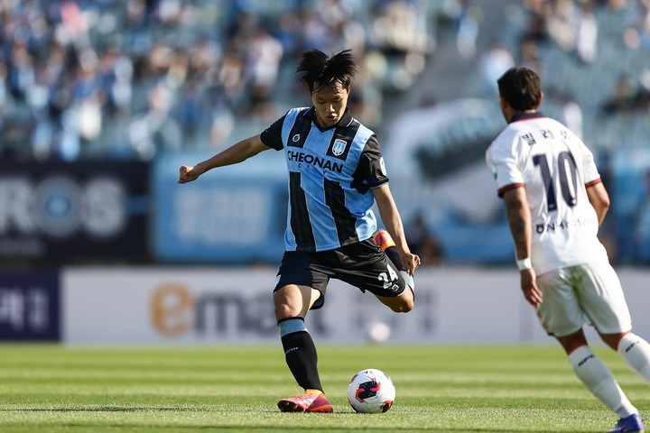 전반 24분 천안의 첫 슈팅이 나왔다. 왼쪽 측면에서 공을 잡은 구종욱이 수비 2명을 제치며 박스 앞으로 치고 들어간 뒤, 오른발 슈팅을 시도했다. 하지만 이광연 골키퍼의 선방에 막혔다.